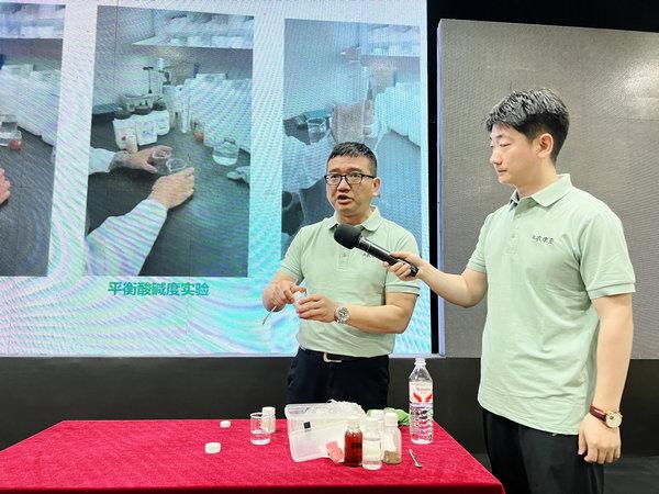 華中農(nóng)業(yè)大學(xué)植物營養(yǎng)學(xué)博士、國家生物肥料工程技術(shù)研究中心成員陳治國博士深入解讀聚谷氨酸對土壤及植物生長的改良,結(jié)合唐山市灤南縣土壤特性,詳細(xì)解讀了豐與安玉米專用肥的技術(shù)創(chuàng)新優(yōu)勢。豐與安玉米專用肥通過添加聚谷氨酸成分,肥料可提升土壤保水保肥,調(diào)酸調(diào)堿,增加養(yǎng)分利用,尤其在沙土、鹽堿土質(zhì)地區(qū)增產(chǎn)效果顯著,以科學(xué)數(shù)據(jù)和現(xiàn)場實(shí)驗(yàn)為農(nóng)戶答疑解惑,提升產(chǎn)品可信度。