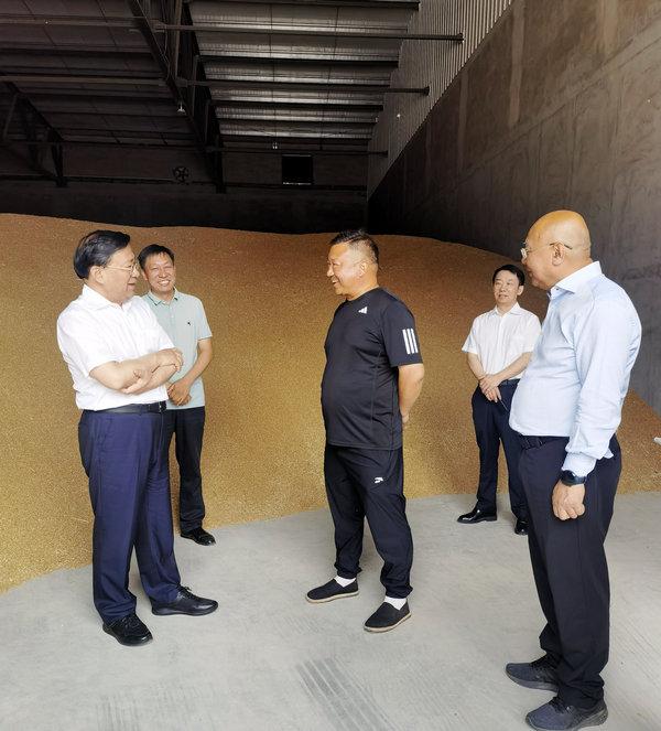 韓俊來到延津縣帝益麥種業(yè)公司,了解小麥新品種選育及推廣情況,鼓勵公司與科研機構建立協(xié)同創(chuàng)新機制,加快品種創(chuàng)新攻關,培育更多高產、抗逆、廣適的優(yōu)良品種,搞好成果轉化,把好品種盡快推廣開。他還來到克明面粉有限公司,調研小麥加工及產業(yè)發(fā)展情況,強調要做好“糧頭食尾”增值文章,聚焦市場需要開發(fā)適銷對路的產品,延伸產業(yè)鏈條,發(fā)展產業(yè)集群,全鏈條推動糧食產業(yè)高質量發(fā)展。